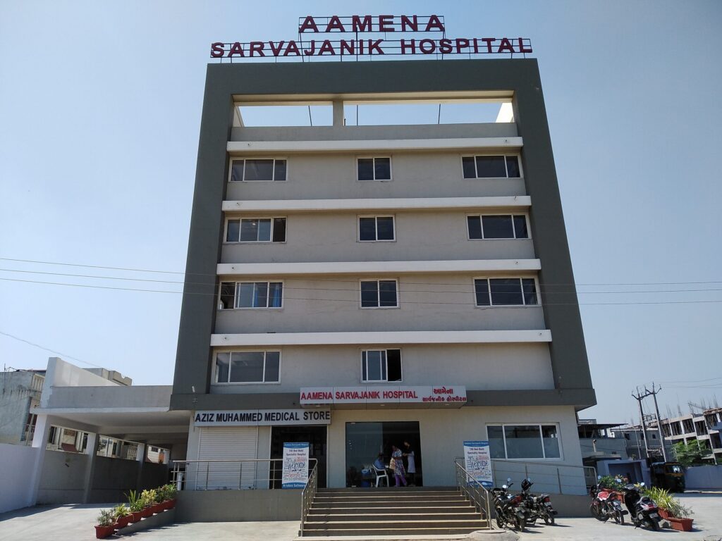 The Aamena Sarvajanik Hospital is a 150 bedded Multi Specialty Hospital with prestigious staff of renowned doctors, nurses and remarkable equipment providing the most modern & caring health care for people of Surat & across the regions. The hospital offers a range of medical services such as in-patient, out-patient, day care treatment, surgery, emergency and trauma care in the finest surroundings of Unn, Surat.